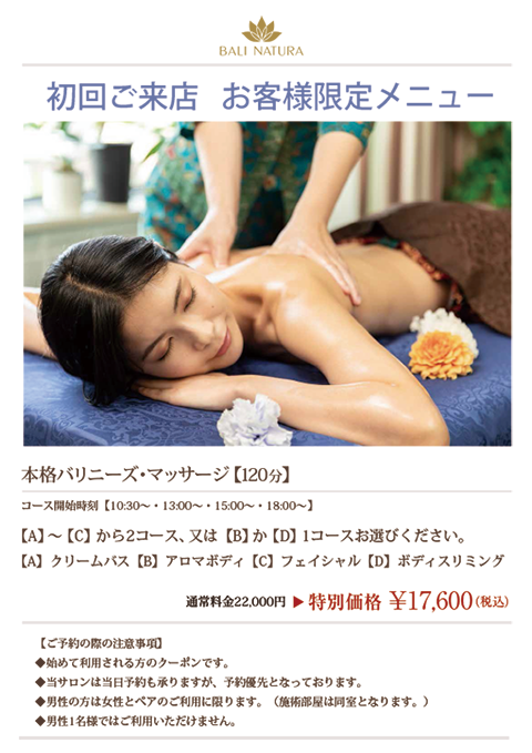 ※90分コースは、バリニーズアロマボディスリミングをお選びいただけません。